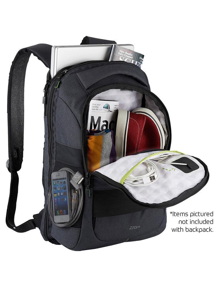 Our sleek Whip-It travel backpack is the ultimate accessory for your tech savvy and modern lifestyle. It pushes mobile technology to the limit by providing access for charging your electronics right inside your bag. Breeze through security checkpoints without a hassle - this TSA-friendly bag features a zip around laptop compartment that opens completely for inspection. With a wealth of handy compartments and clever features, you'll never be short of usable space with this strong, durable, and practical laptop backpack.